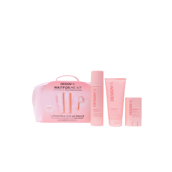 Emportez une coiffure impeccable partout avec vous grâce à ce kit de coiffage tout-en-un, présenté dans une adorable trousse en similicuir ! Le kit WAITFOR.ME en édition limitée contient les trois incontournables de la collection HOLD.ME : une laque à trois niveaux de fixation pour une tenue modulable, notre stick coiffant innovant qui discipline les mèches rebelles et réalise des coiffures lisses et impeccables en un clin d'œil, et notre crème coiffante multi-usages HOLD.ME qui lisse et prépare vos cheveux pour un brushing parfait. Ensemble, ils offrent un résultat lisse et longue tenue, avec une maîtrise optimale, pour une coiffure impeccable en toutes circonstances !